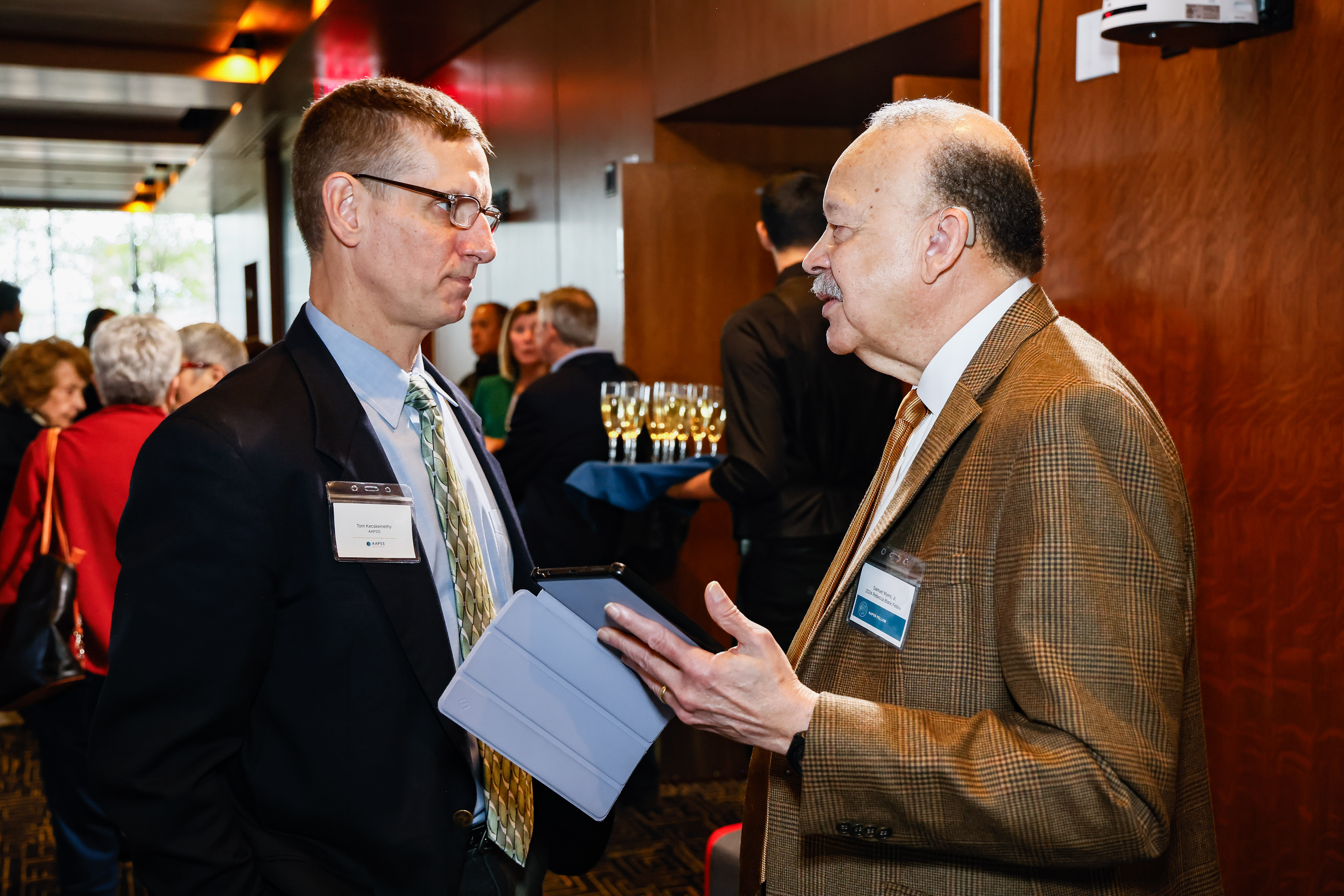 The 2025 Fellows of the AAPSS were inducted on October 30 at a luncheon held in Washington, DC. Xavier de Souza Briggs, Michael Jones-Correa, Goodwin Liu, Sharon Parrott, Celeste Watkins-Hayes, and James P. Ziliak received a warm welcome from AAPSS President Sheldon Danziger, the board of directors, and other fellows as they accepted their fellowships.