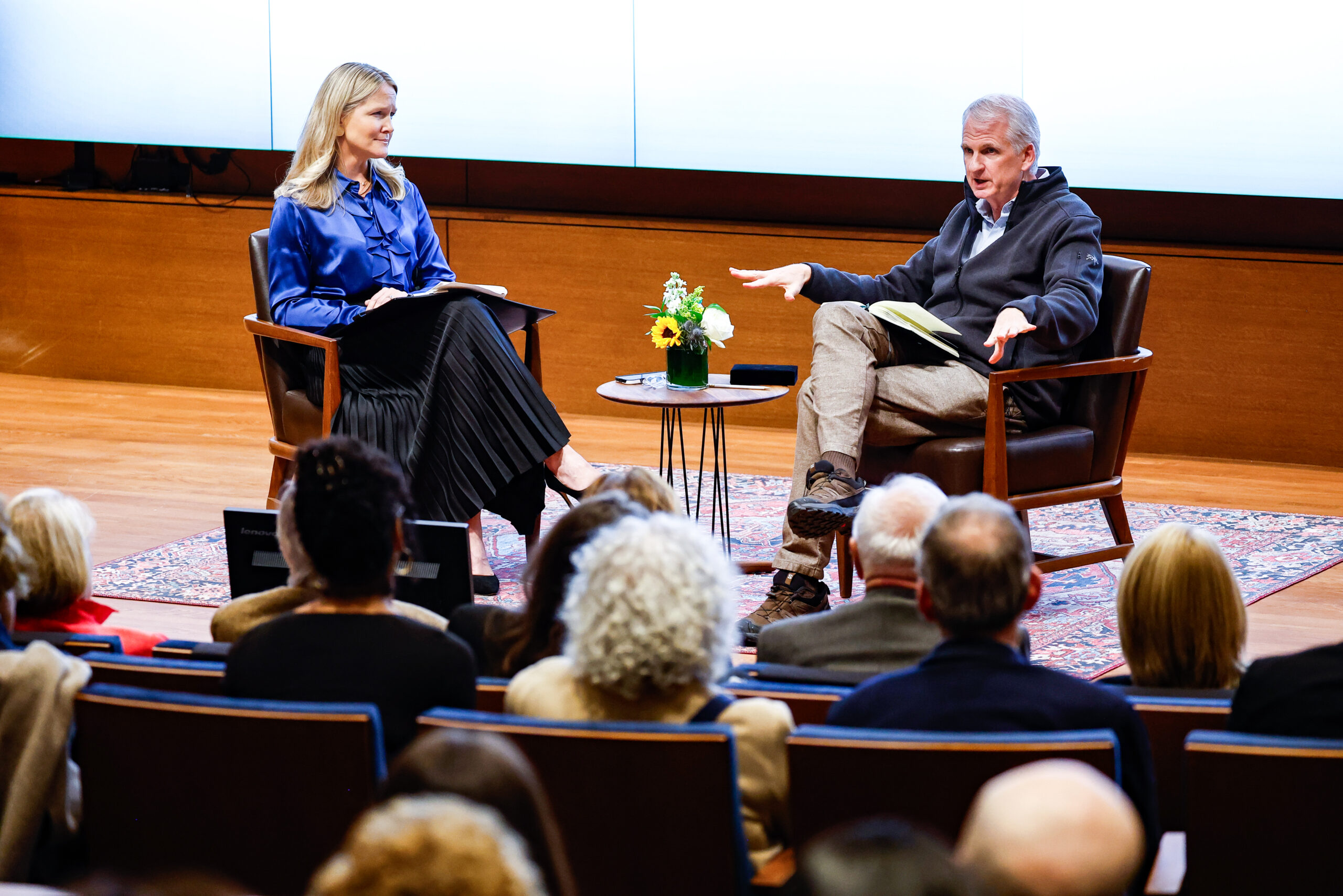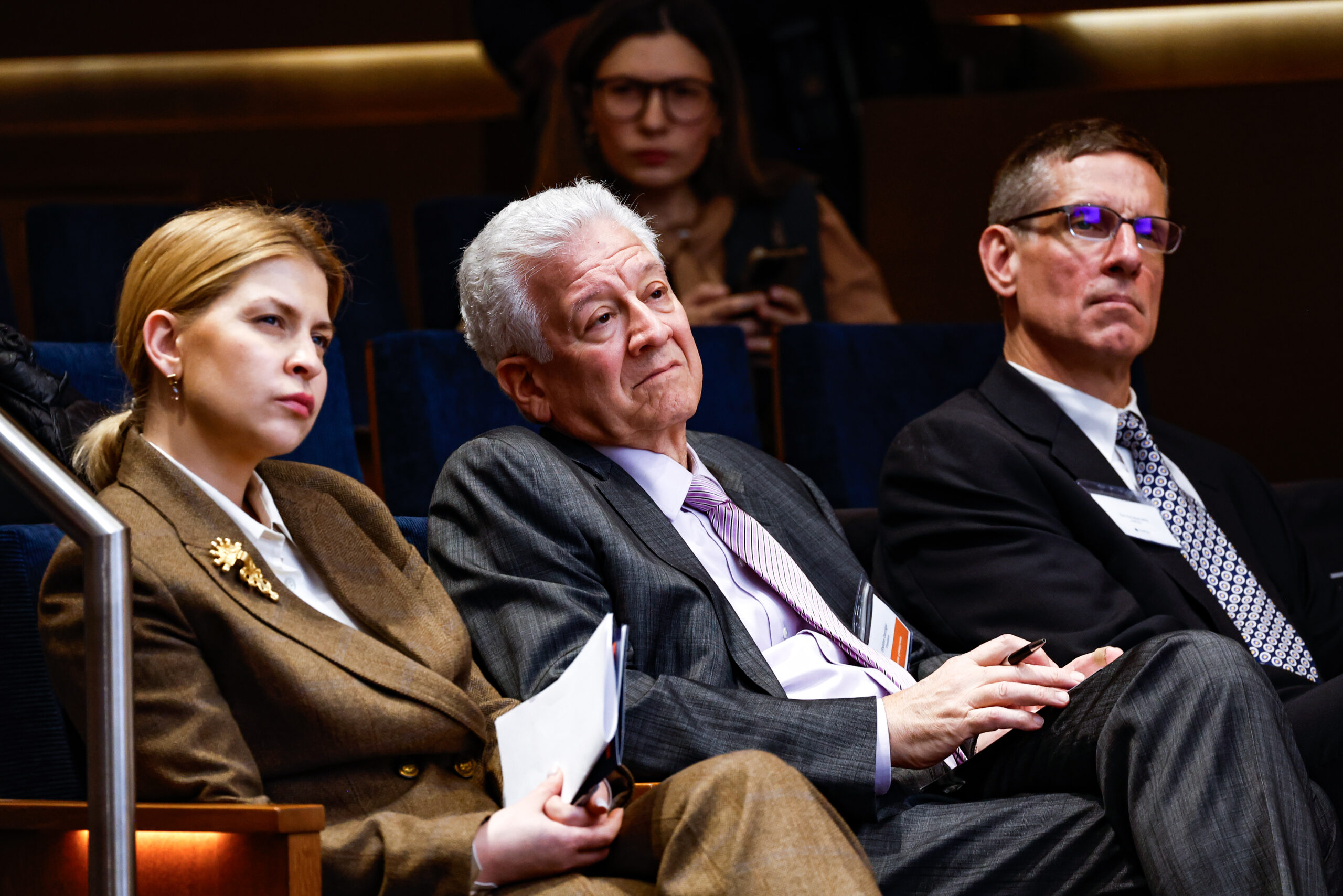 Angela Stent, a foreign policy specialist at the American Enterprise Institute, introduced Snyder. She noted his contributions to European history, his writings on authoritarianism and the fragility of democracy, and his advocacy for Ukraine, praising his âpresent[ation of] Ukrainian history to a global audience.â